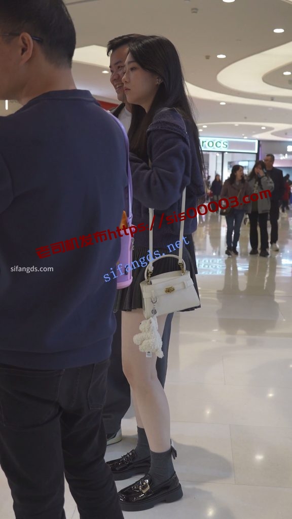 •  百褶裙美女逛商场,细内衬挡不住微透蕾丝边内裤。