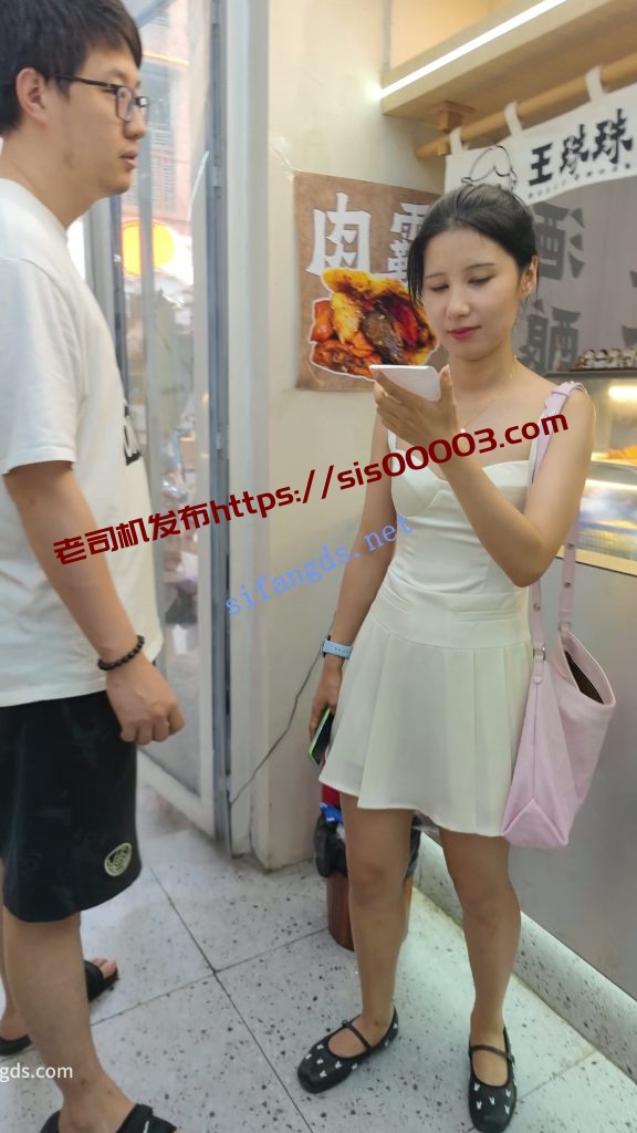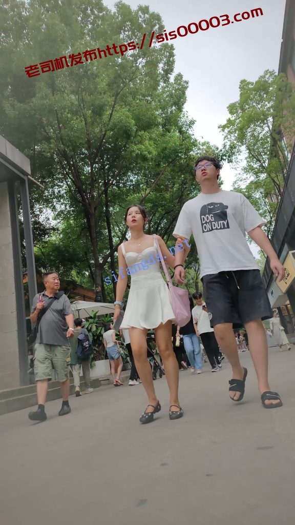 •  白色连衣裙小姐姐和男朋友逛街,白色内内