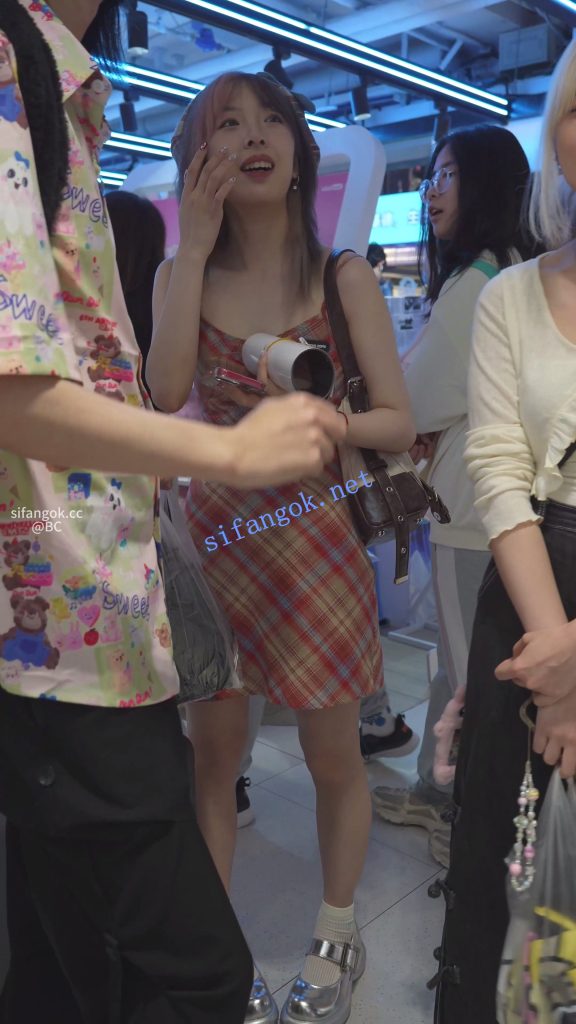 •  吊带格裙美女逛商场,蕾丝内脸底同框正面黑森林,柜台买单的时候内裤被灯光照亮。