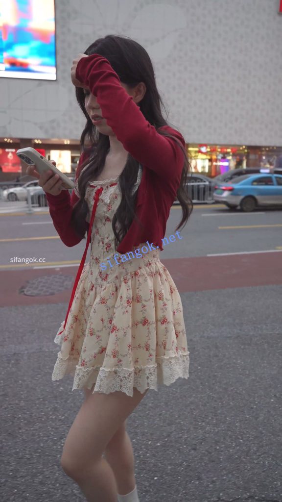 • 超短蕾丝花裙小姐姐逛街,裙子非常短刚刚盖住屁股,走路的时候有风,裙摆被吹起内裤大面积露出,小姐姐一只手根本捂不住,正面微透黑森林。